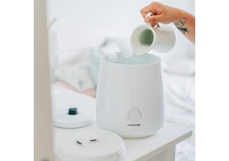 Зволожувач повітря Suavinex SMART — ідеальне рішення для підтримки комфортної вологості в дитячій кімнаті. Завдяки вбудованим датчикам, ви можете контролювати рівень вологості та температуру в приміщенні в режимі реального часу через мобільний додаток Suavinex Link.